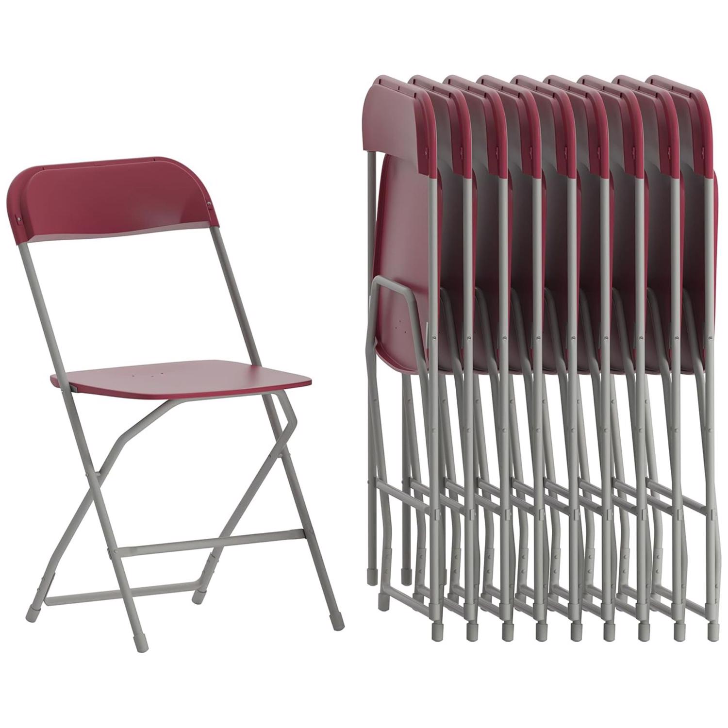 Upgrade your seating solution with this 10 Pack of Folding Chairs, designed for strength, durability, and versatility. Whether you’re hosting an indoor event, outdoor gathering, or need extra seating for your business, these folding chairs are the perfect choice. Built with a heavy-duty 18-gauge red powder-coated steel frame, they are strong enough to withstand everyday use while maintaining a sleek, modern appearance.
