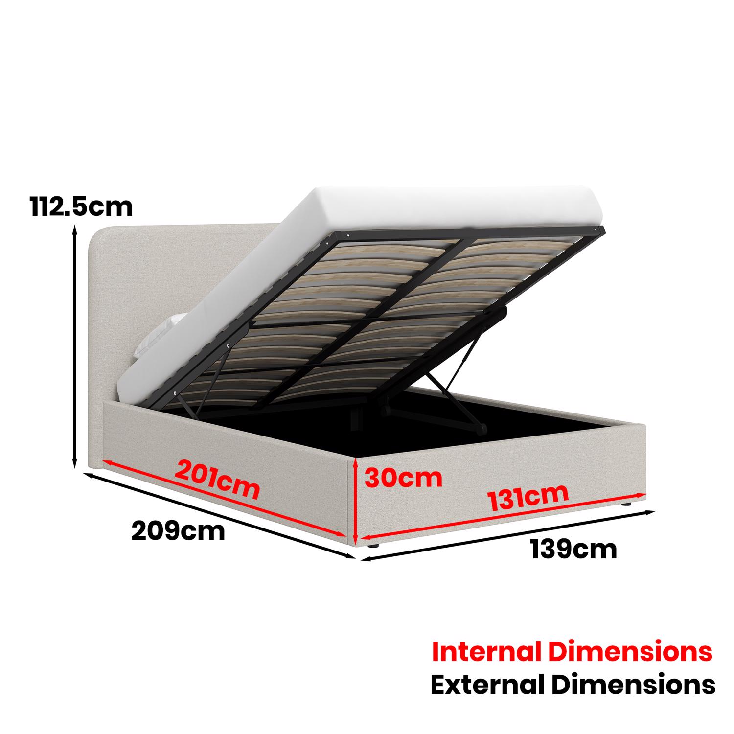 The high padded headboard offers exceptional comfort and support for reading or relaxing in bed, while the padded sides and footboard enhance both comfort and visual appeal. Beneath the bed, the gas-assisted hydraulic lift system allows effortless access to a generous 800L internal storage compartment, providing the ideal solution for keeping bedding, clothing, or personal items neatly tucked away.