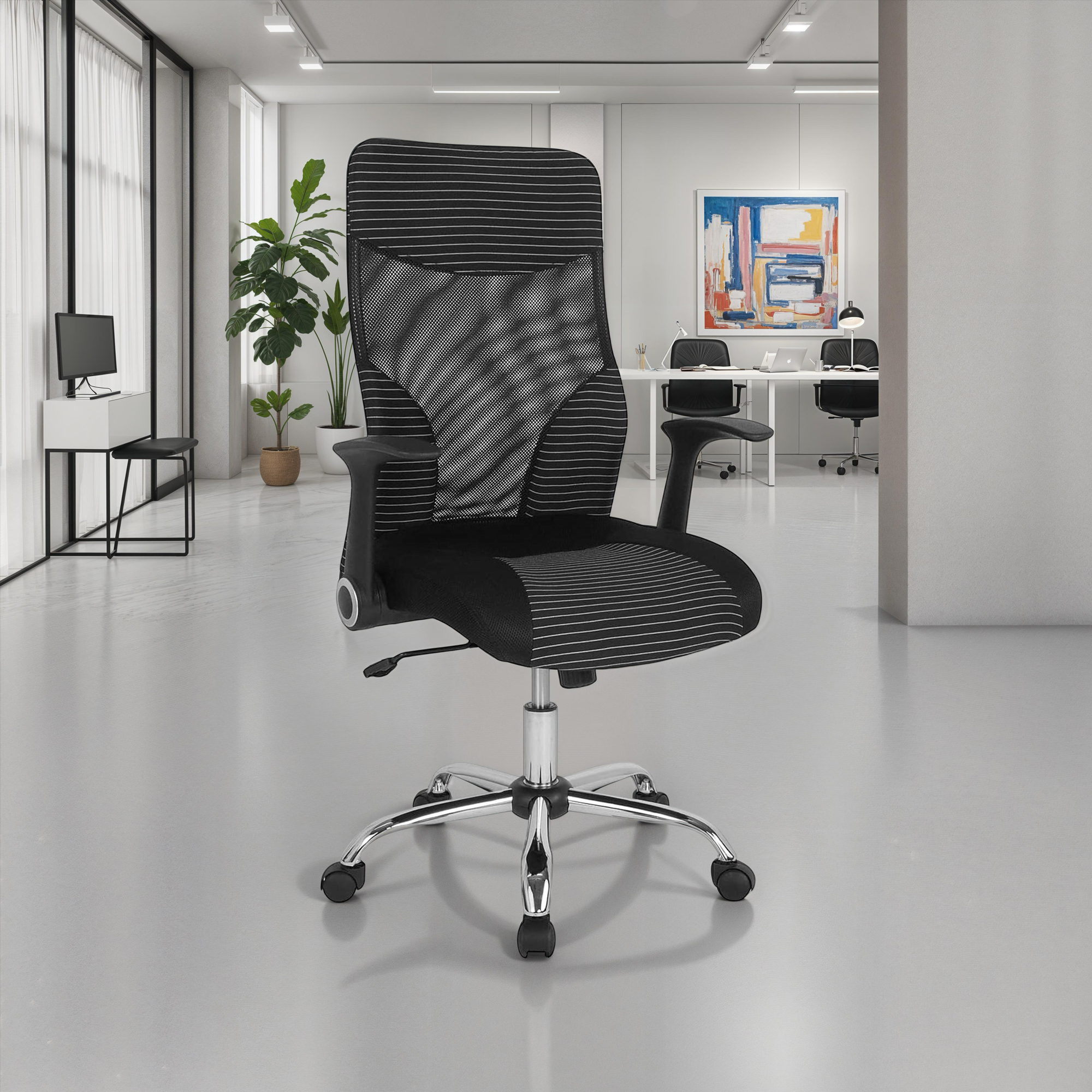 Boost your comfort and productivity with the Black Mesh High Back Office Chair with Striped Accents, a modern seating solution designed for both home offices and professional workspaces. Combining ergonomic support, breathable mesh, and stylish detailing, this office chair is built to keep you comfortable during long working hours while adding a sleek look to your environment.