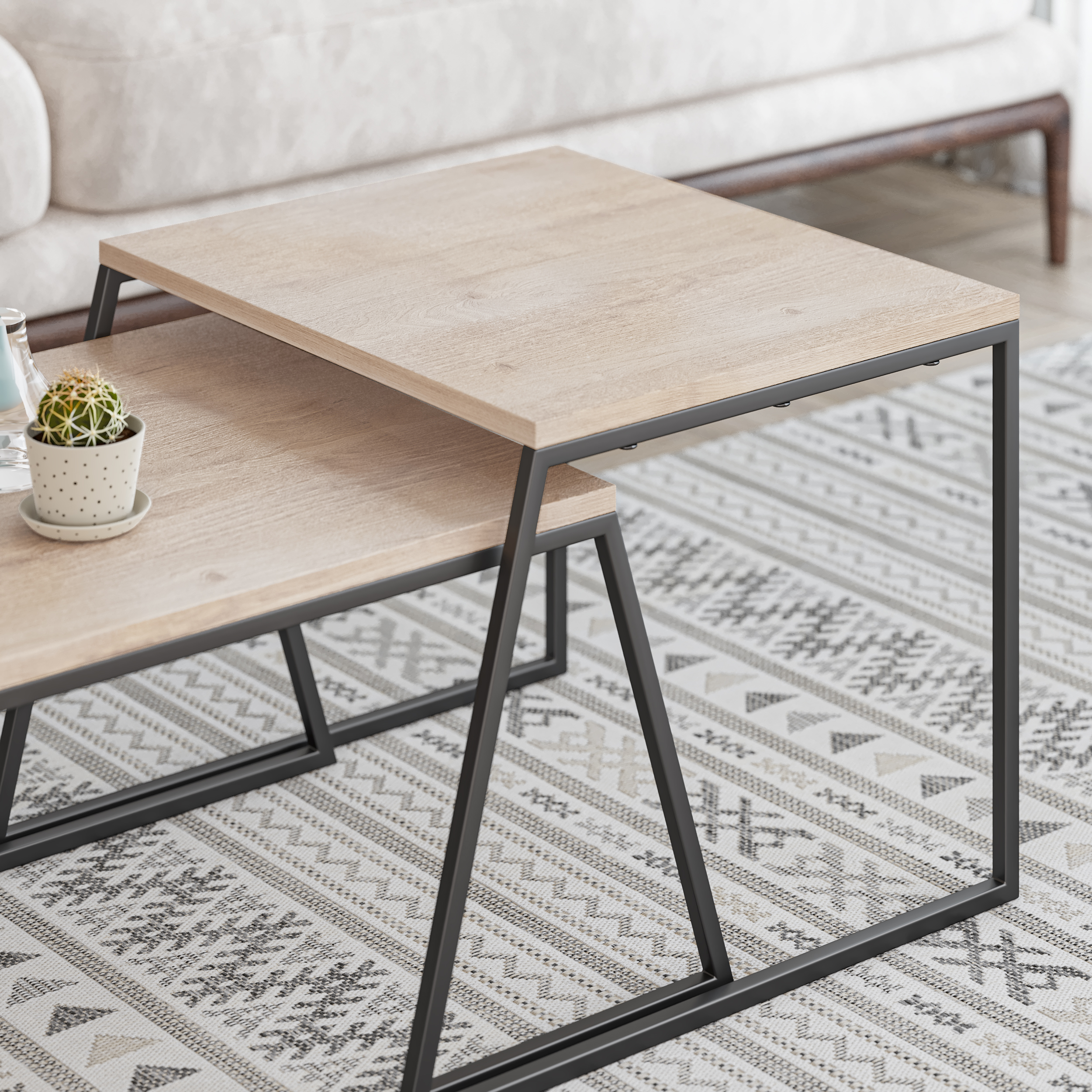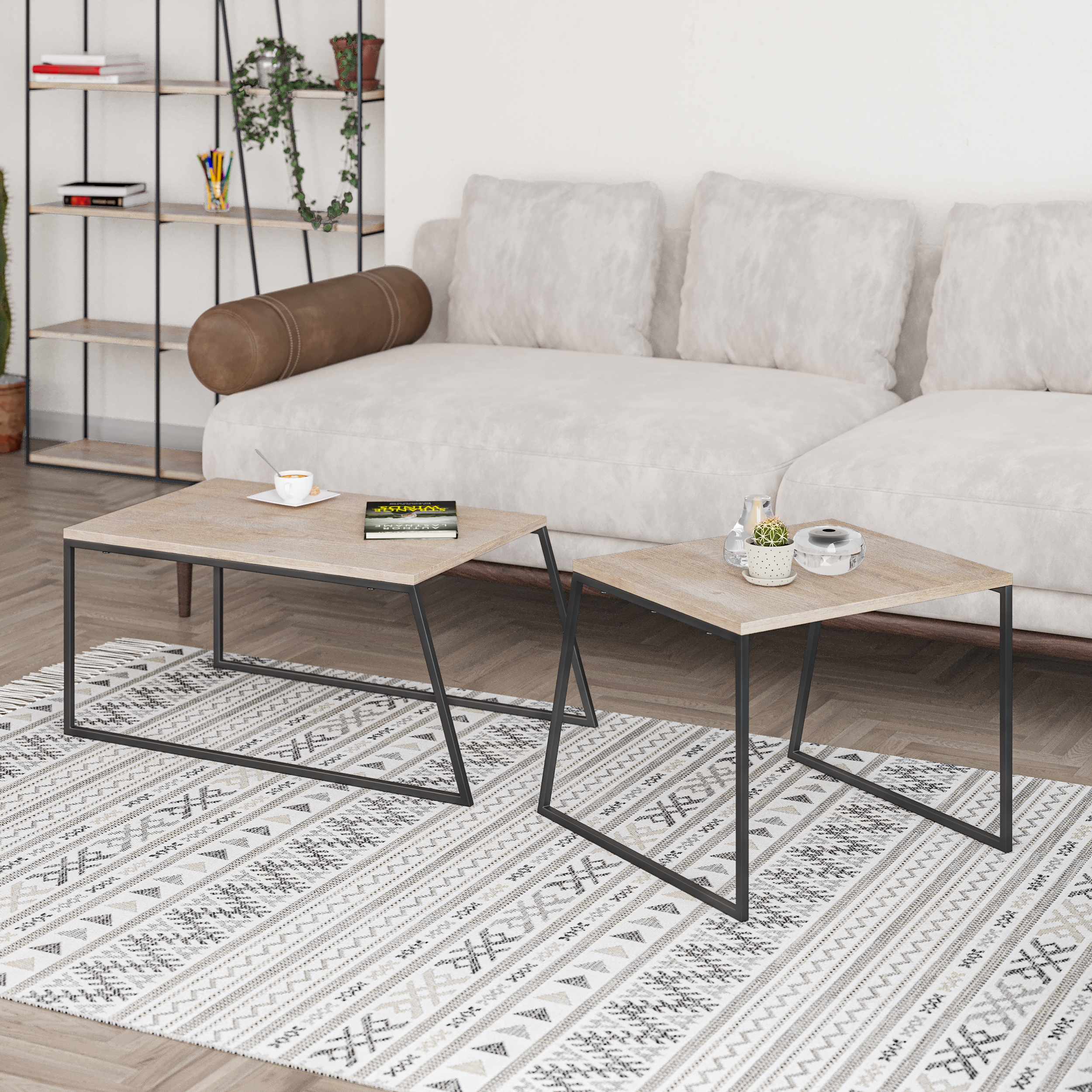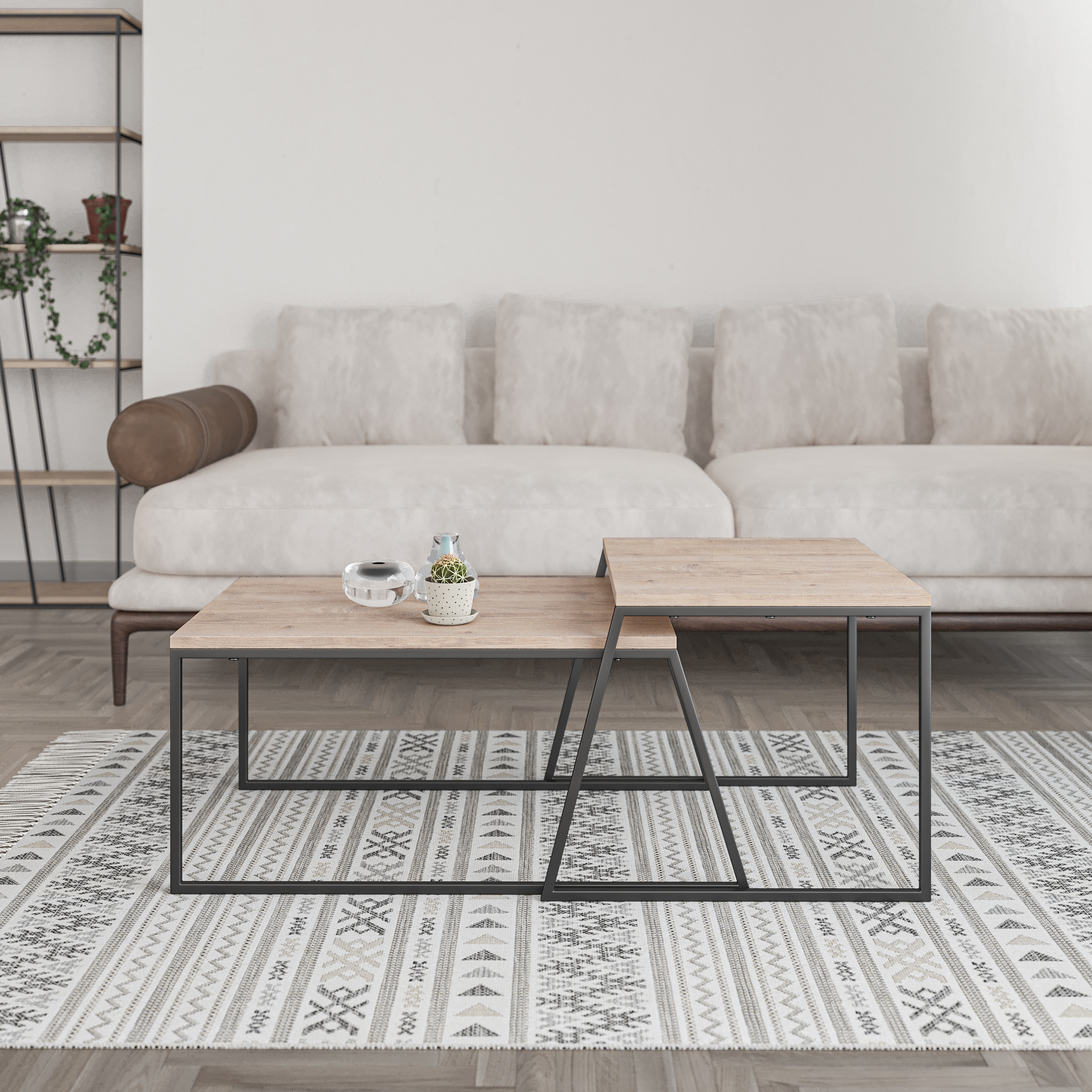 Upgrade your living room decor with the Pal Modern Coffee Table in Oak, a unique and multipurpose 2-piece set that combines style and functionality perfectly.