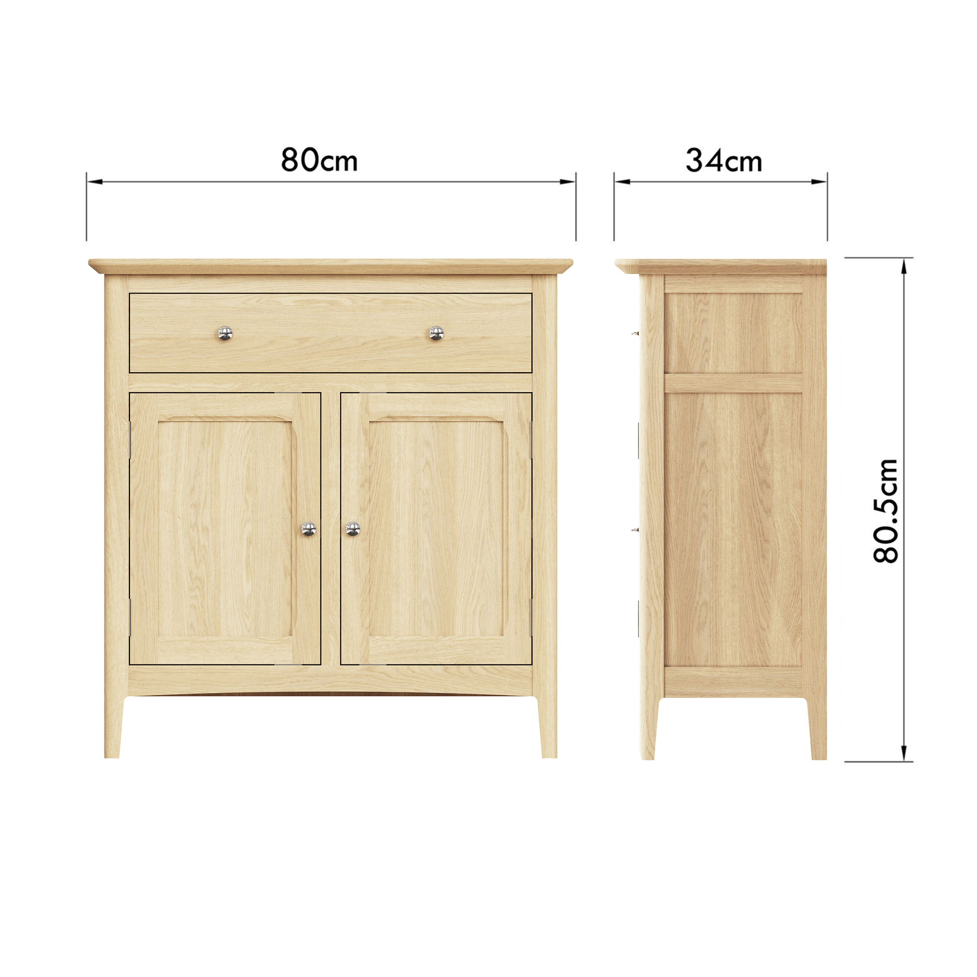 The Hudson Ash 2 Door 1 Drawer Sideboard blends timeless design with enduring quality. Crafted from Ash wood and constructed with traditional dovetail joints, this sideboard showcases the natural beauty of the grain beneath a smooth lacquered finish. Its compact yet practical design features a spacious cupboard with internal shelving, paired with a central drawer — ideal for tidying away everyday essentials. Inspired by classic Shaker style, it stands on tapered legs with a subtly contoured top, bringing understated elegance to any living or dining space. Delivered fully assembled, it’s a ready-made solution for stylish storage.
