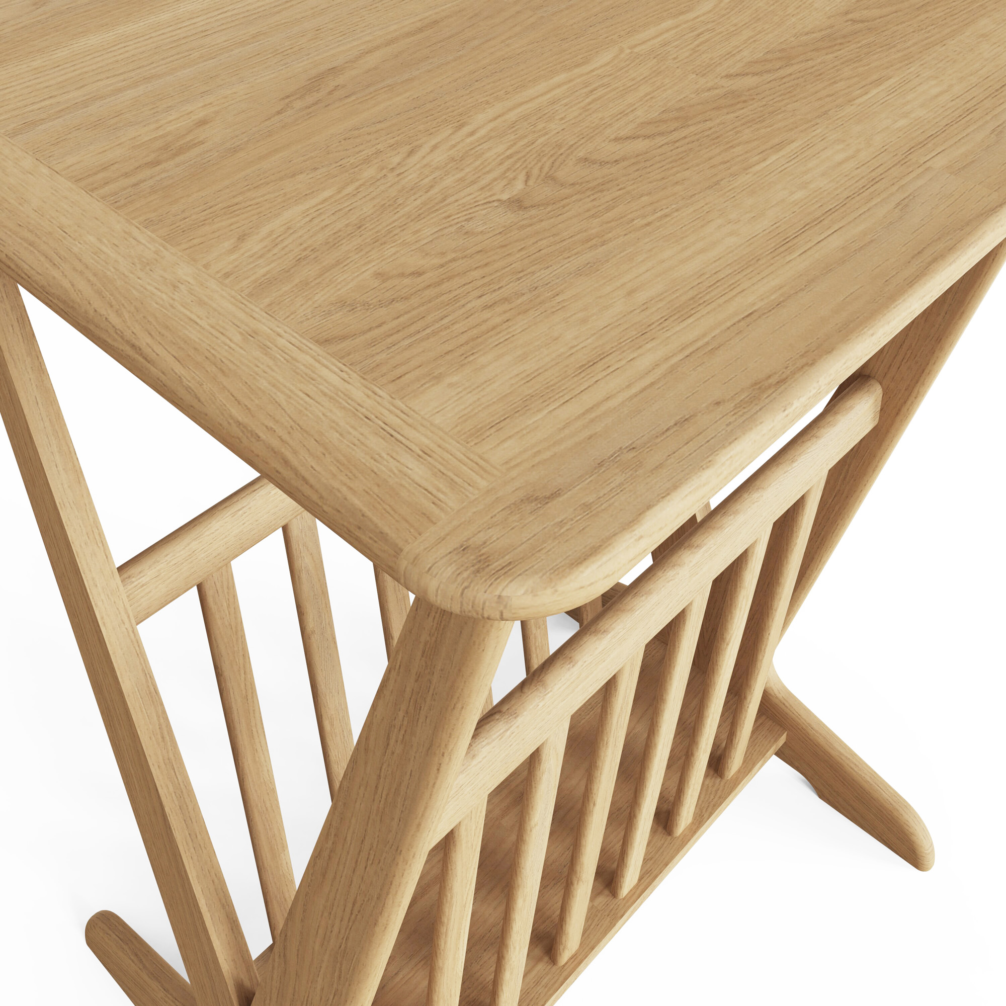 - Shaker-inspired design with tapered legs and a contoured top.