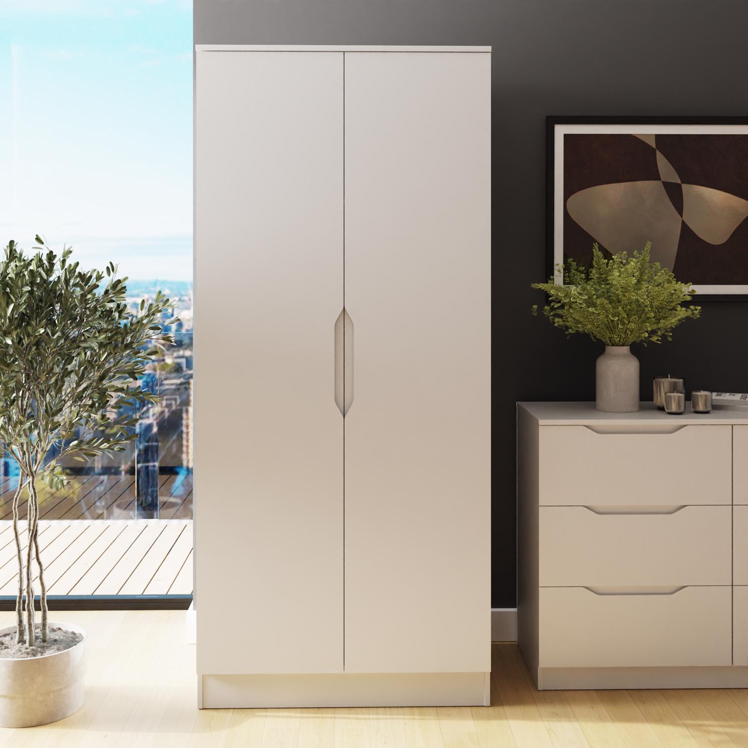 The FWStyle Luno 2 Door White Double Wardrobe is the perfect balance of sleek design and practical storage, making it an elegant addition to any bedroom. With its clean lines and contemporary finish, this wardrobe is designed to enhance your space while providing all the functionality you need for everyday living.
