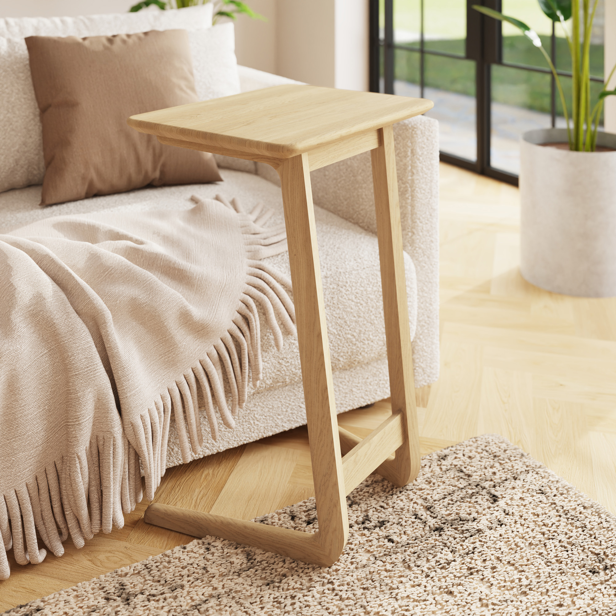 The Hudson Ash Angled Sofa Tablet Table is a versatile and elegant solution for modern living. Crafted from a mixture of durable ash wood, pine and MDF for enhanced durability and strength. The natural lacquered ash finish highlights the unique grain of the wood, adding a refined touch to its appearance. Designed with practicality in mind, this table’s angled design makes it a perfect end table for sofas and chairs, and it’s ideally sized for holding tablets, books, or other essentials. With Scandi-inspired elements such as tapered legs and a contoured top, it blends timeless style with everyday functionality. Minimal assembly required – just attach the legs!