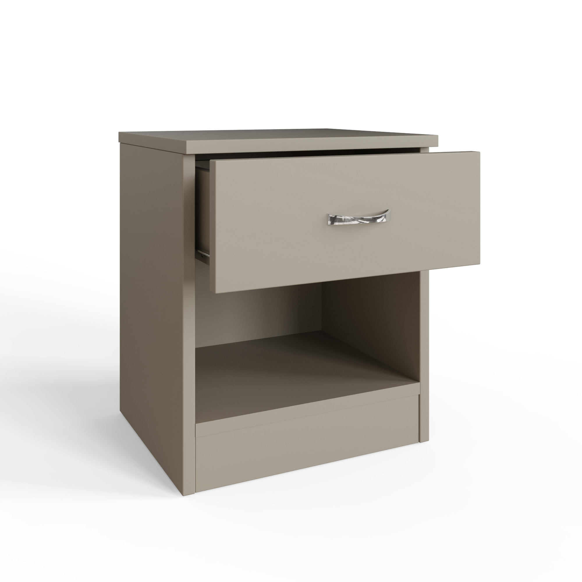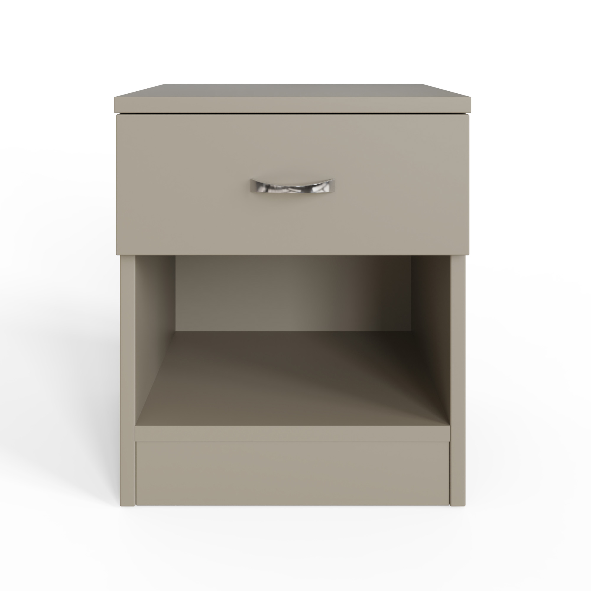 Bring convenience, style, and everyday practicality to your bedroom with the Promo 1 Drawer Nightstand in Putty. Thoughtfully designed to simplify your nightly routine, this compact yet functional bedside table keeps everything you need within easy reach whether it’s your book, reading glasses, phone, or a bedside lamp.
