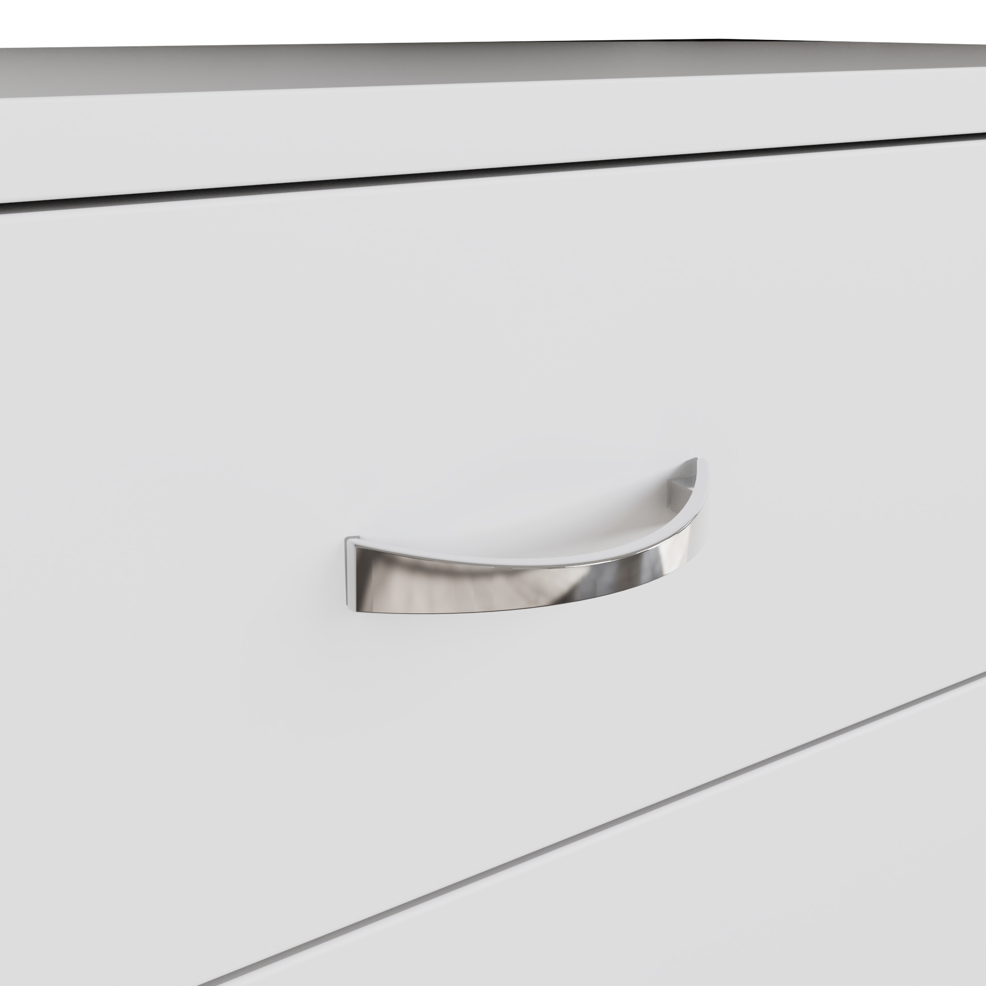 Built with durability in mind, the chest features a scratch resistant melamine surface that stands up to daily wear while retaining its fresh, polished look. It’s ideal for busy homes and easy to clean just a quick wipe keeps it looking like new. The chrome effect metal handles not only offer a comfortable grip but also add a subtle modern detail that elevates the overall design.