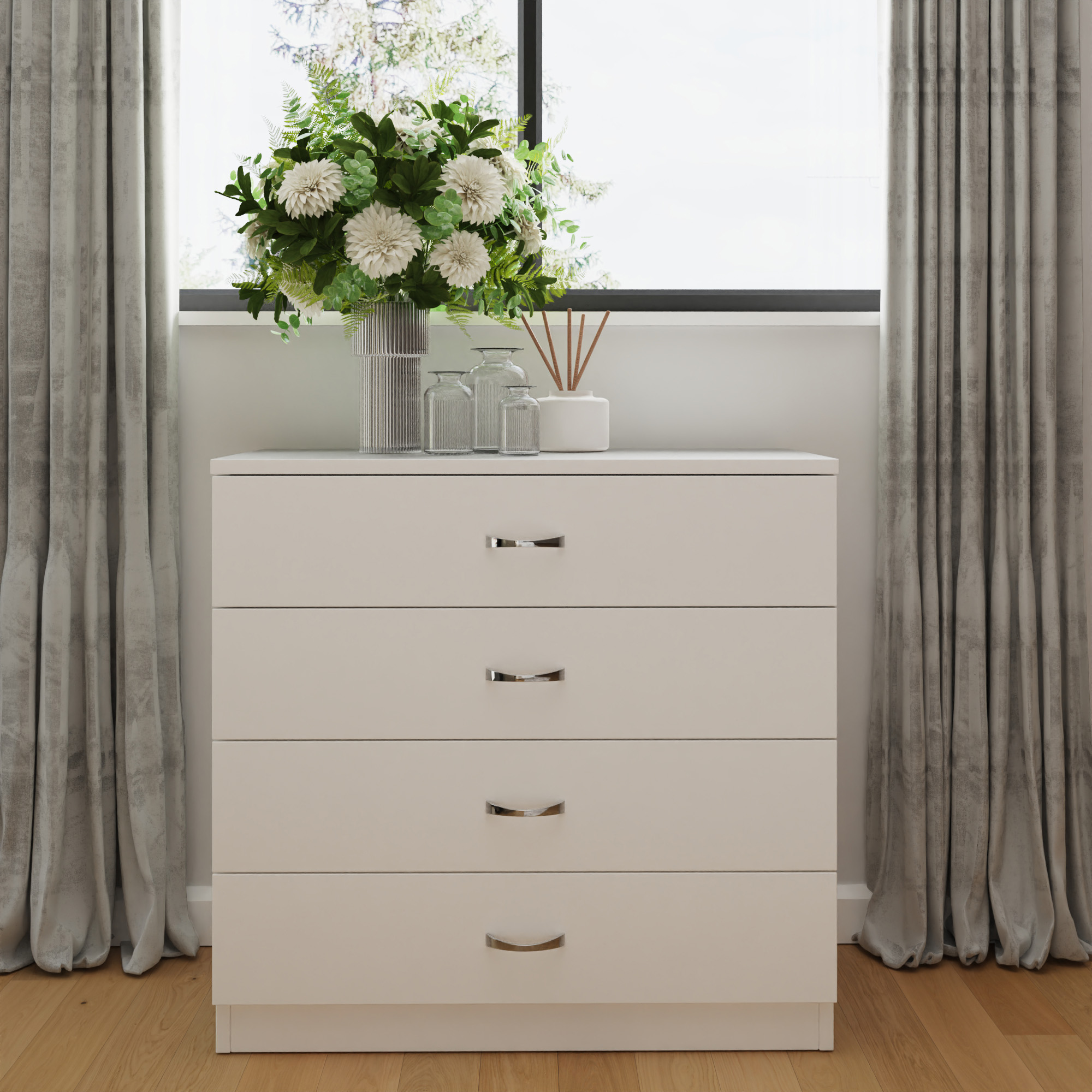 Bring order, style, and practicality to your bedroom with the Promo 4 Drawer Chest of Drawers a beautiful balance of form and function designed to make everyday living simpler. Perfect for anyone who values a clean, well organised space, this chest combines generous storage with a calm, modern aesthetic that instantly enhances any room.