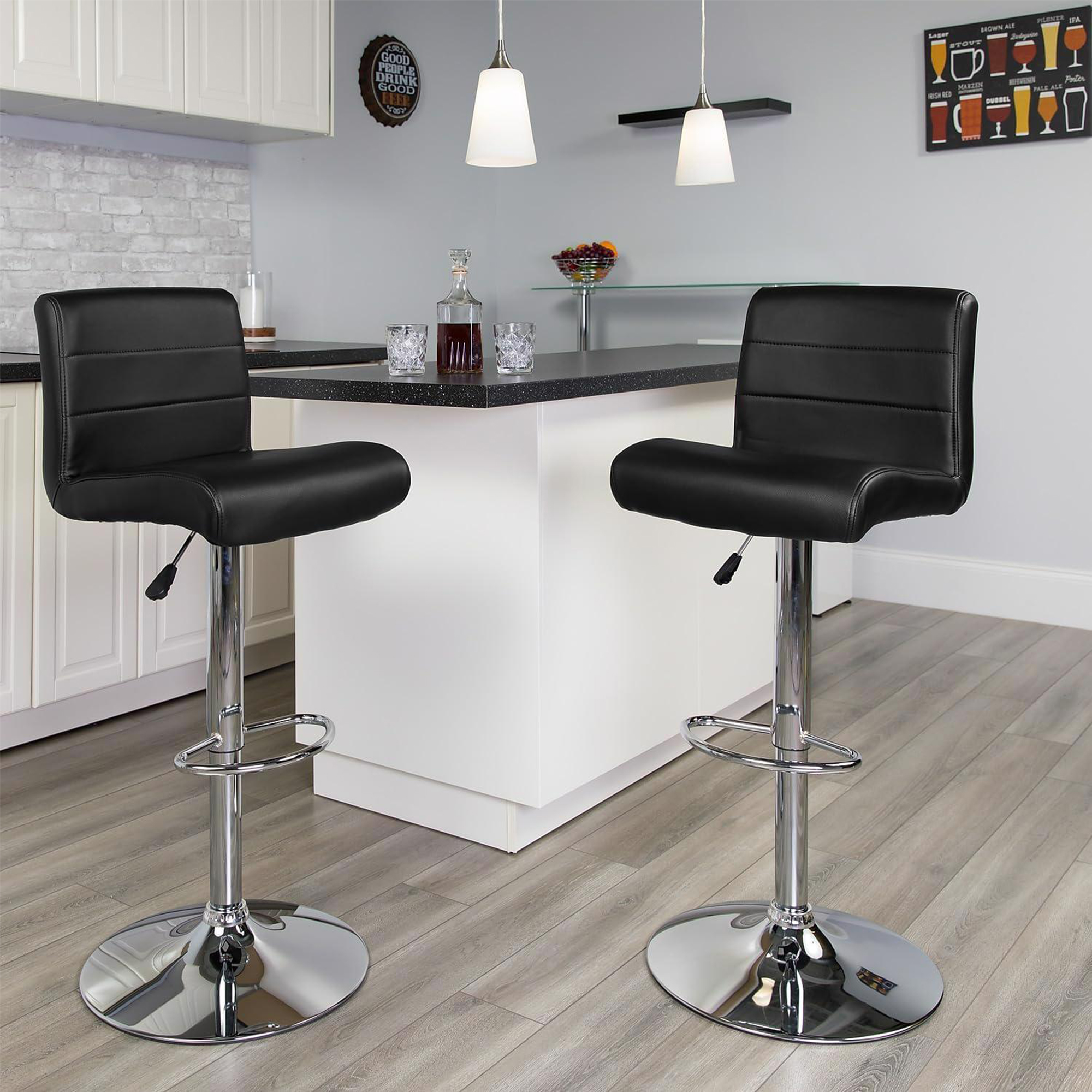 For added comfort, each barstool is equipped with a built-in chrome footrest, providing proper support while seated. The sturdy chrome pedestal base ensures strength and balance, while the wide 17.5-inch round base offers excellent stability. A protective floor ring is fitted beneath the base to prevent scratches and marks on your flooring, keeping your home looking its best.