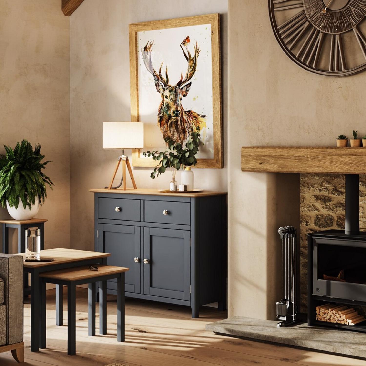 Taberno Oak 2 Door 2 Drawer Sideboard Graphite Blue