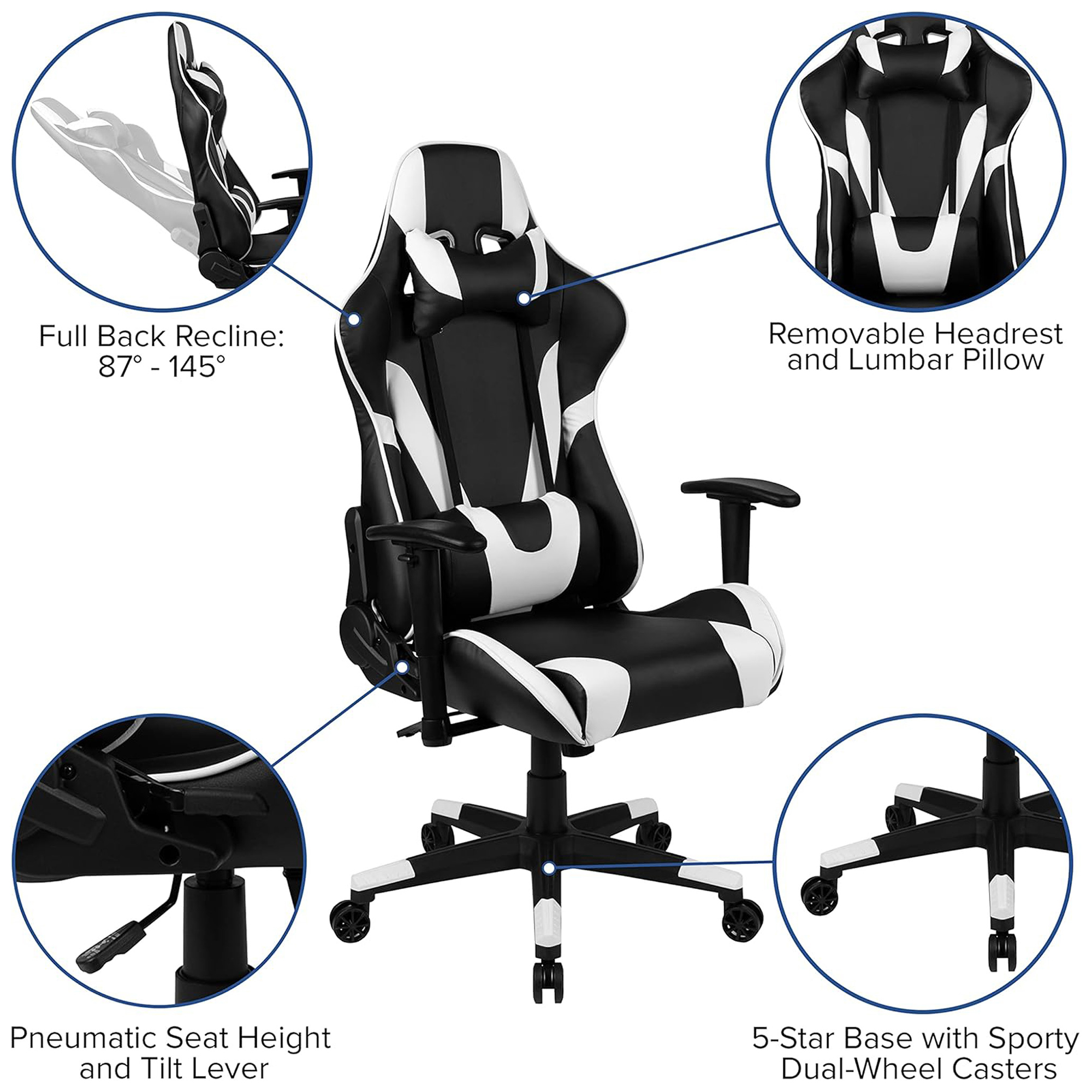 This gaming chair features a bold racer-inspired look with a sleek black and white faux leather finish, making it the perfect statement piece for any setup. Whether you’re battling through marathon gaming sessions or staying productive at your desk, this office chair provides the comfort and flexibility you need.
